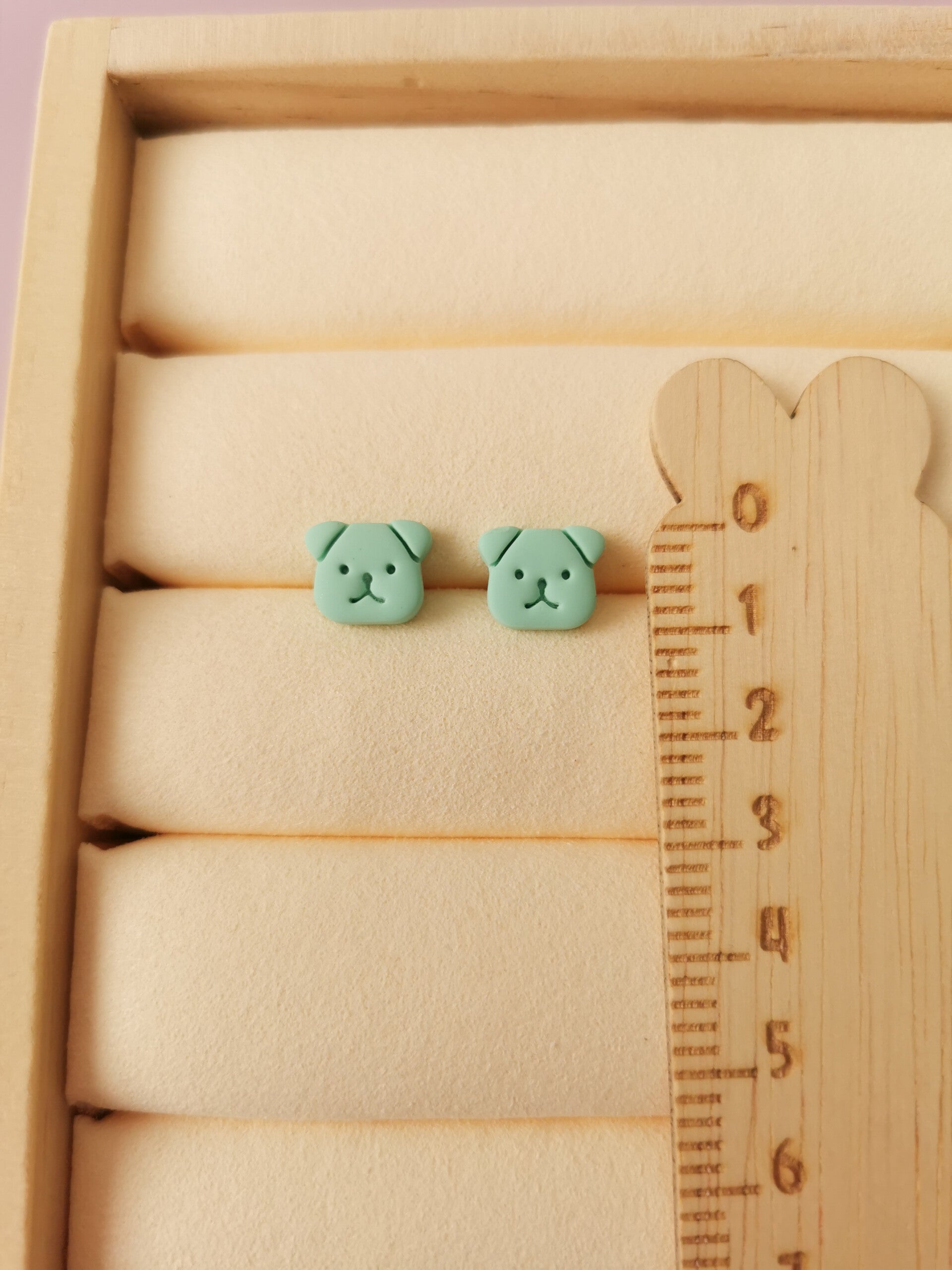 Kleine honden studs in meerdere kleurtjes. Ze zijn handgemaakt van polymeerklei, licht in gewicht en lekker kleurrijk!
