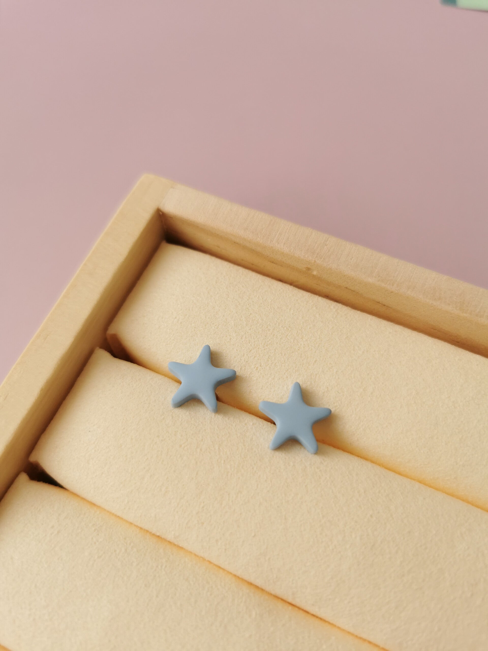 Kleine zeester studs in meerdere kleurtjes. Ze zijn handgemaakt van polymeerklei, licht in gewicht en lekker kleurrijk!