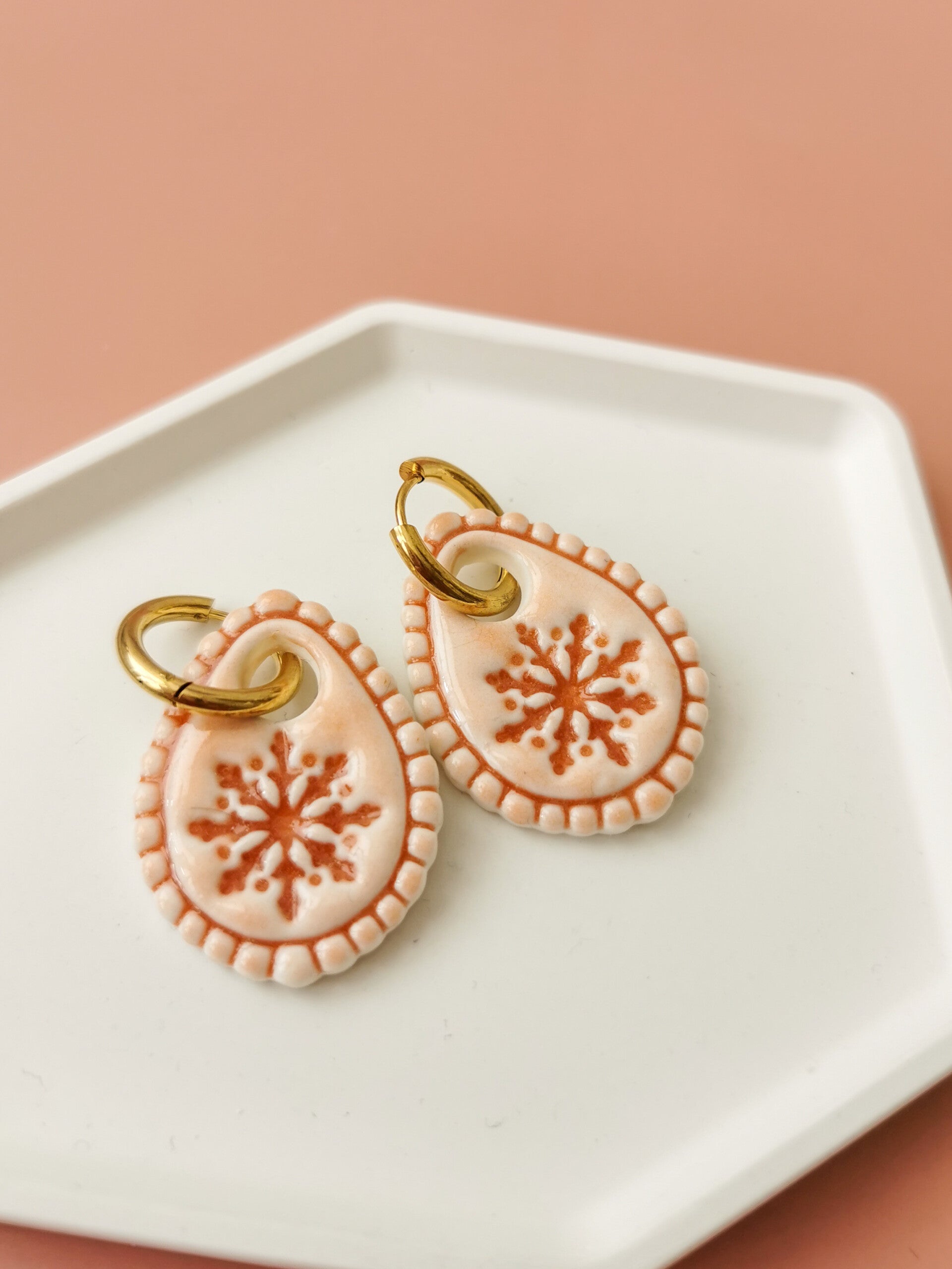 Winterse oorbellen met aparte creolen. Ze zijn handgemaakt van polymeerklei, licht in gewicht en lekker kleurrijk! Eén setje is tevens afgewerkt met resin wat zorgt voor een mooie glans.