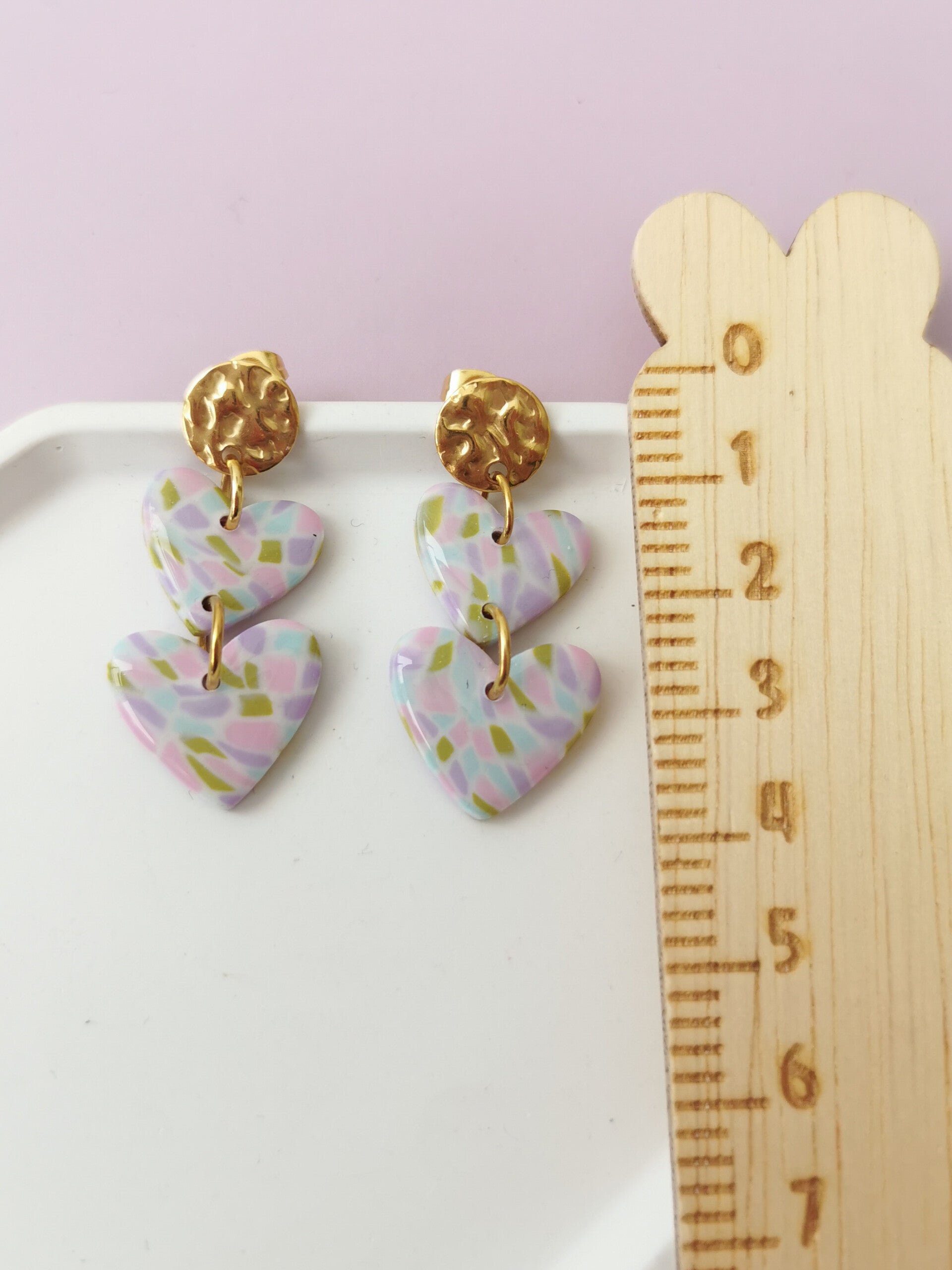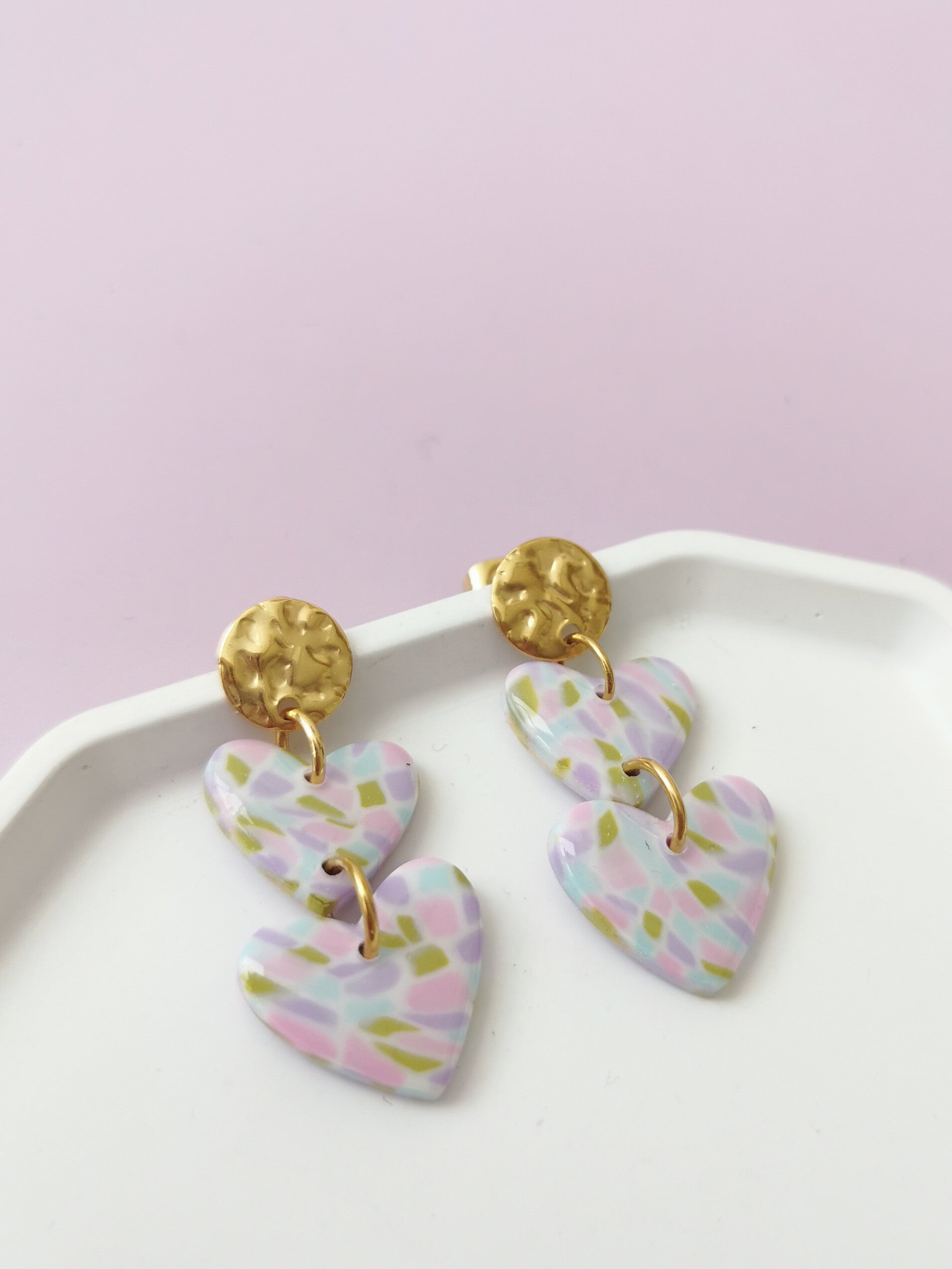 Gekleurde blokjes hartjes oorbellen