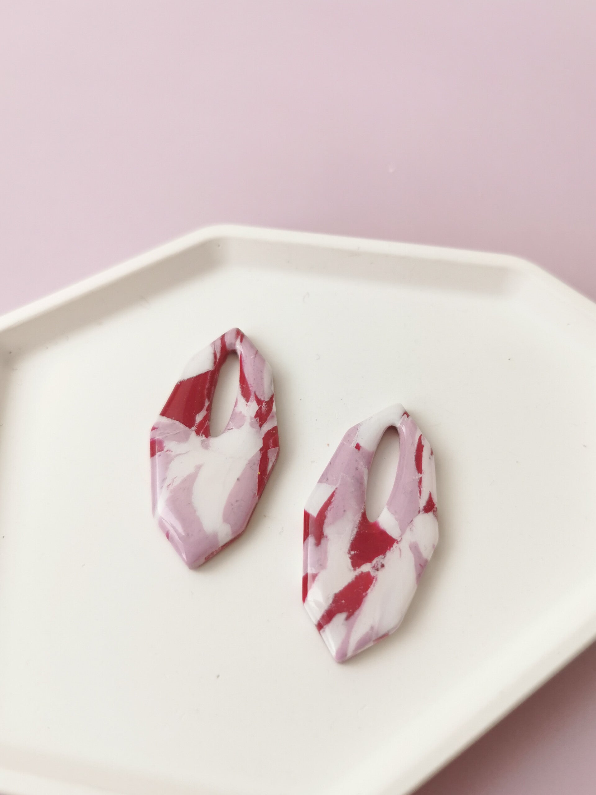 Kleurrijke bedels in een diamantachtige vorm. Ze zijn gemaakt van polymeerklei en super licht in gewicht. Ze zijn tevens afgewerkt met resin wat zorgt voor een mooie glans.