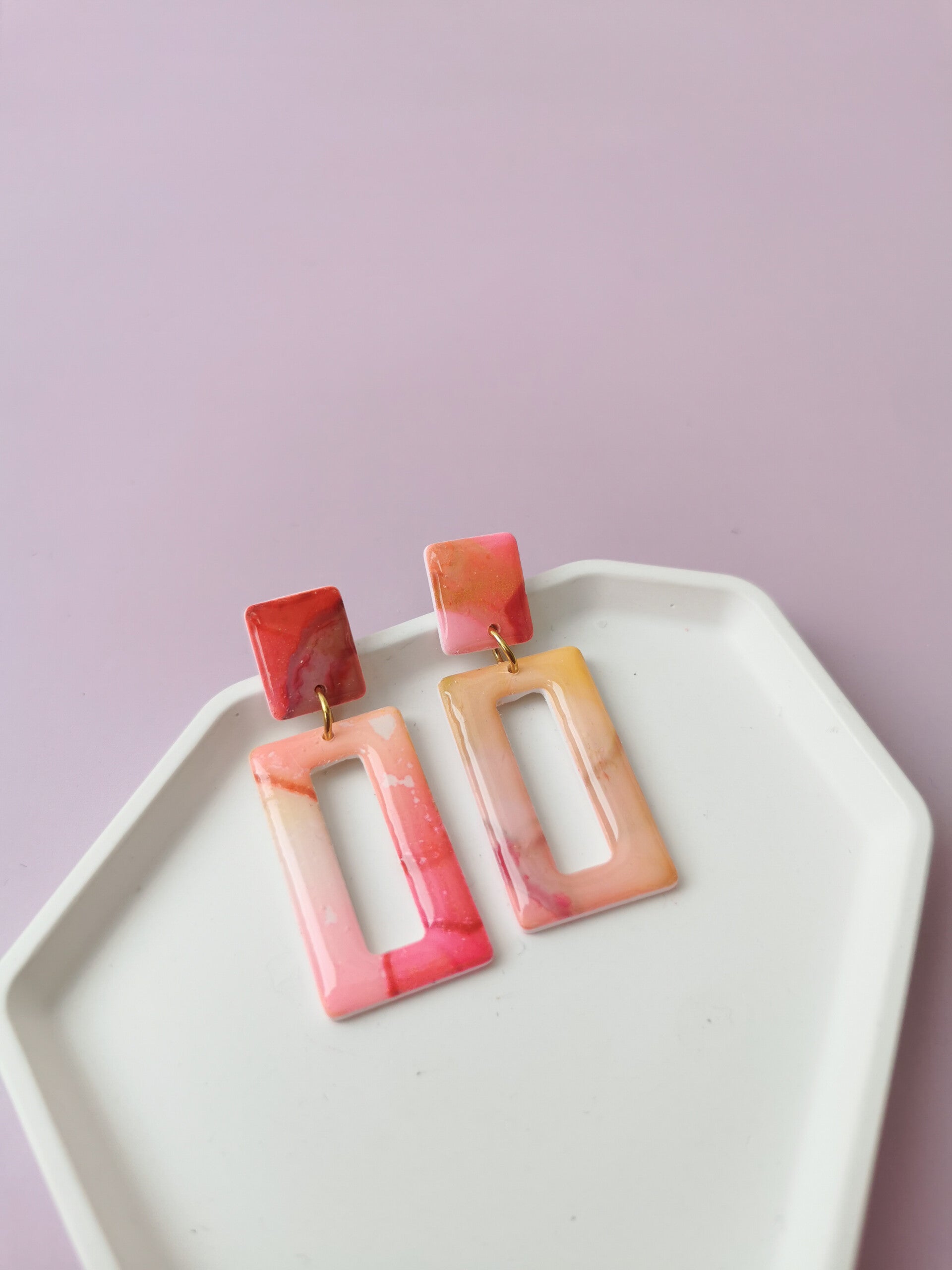 Rechthoekige oorbellen uit de unieke inktcollectie! Ze zijn handgemaakt van polymeerklei, licht in gewicht en lekker kleurrijk! Ze zijn tevens afgewerkt met resin wat zorgt voor een mooie glans.