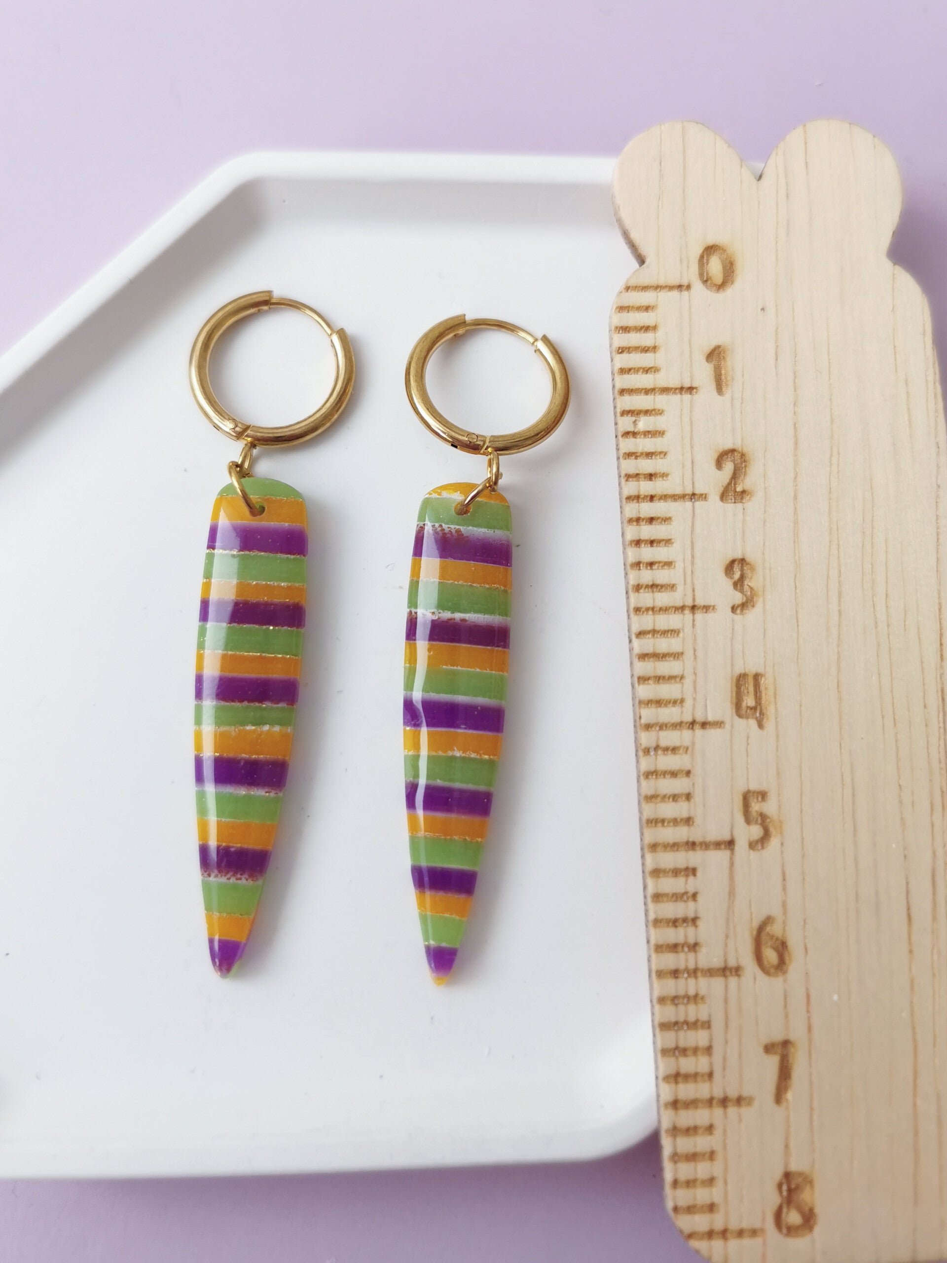 Kleurrijke oorbellen in doorzichtige kleuren. Ze zijn handgemaakt van polymeerklei, licht in gewicht en lekker kleurrijk! Ze zijn tevens afgewerkt met resin wat zorgt voor een mooie glans.